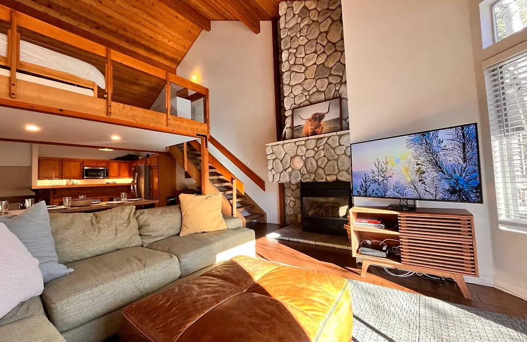 Cozy Mammoth Ski Condo With Mtn Views And Hot Tub Mammoth Lakes villa offers proximity to nearby tourist spots, such as the Crowley Lake, situated 25 minutes' walk away. This holiday home includes a car park and a patio with views of the mountain.